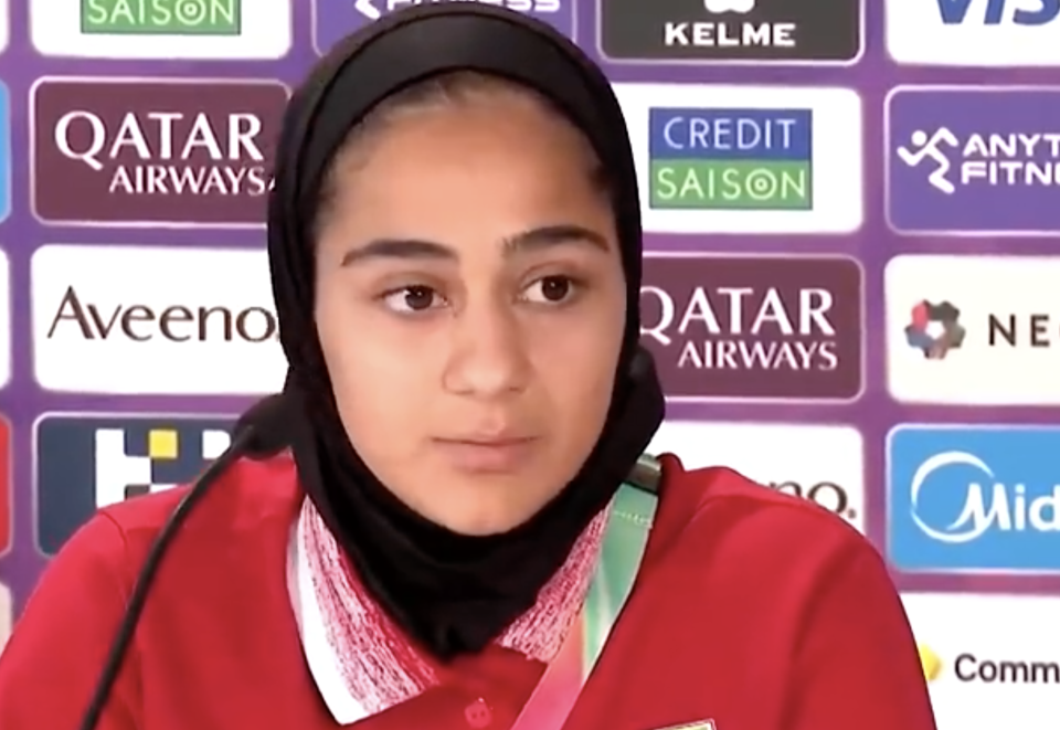 现场有记者询问伊朗女足球员如何看待哈梅内伊被杀害一事。对此,贾法里立刻回应:“我认为我们现在不适合回答这个问题,下一个问题。”